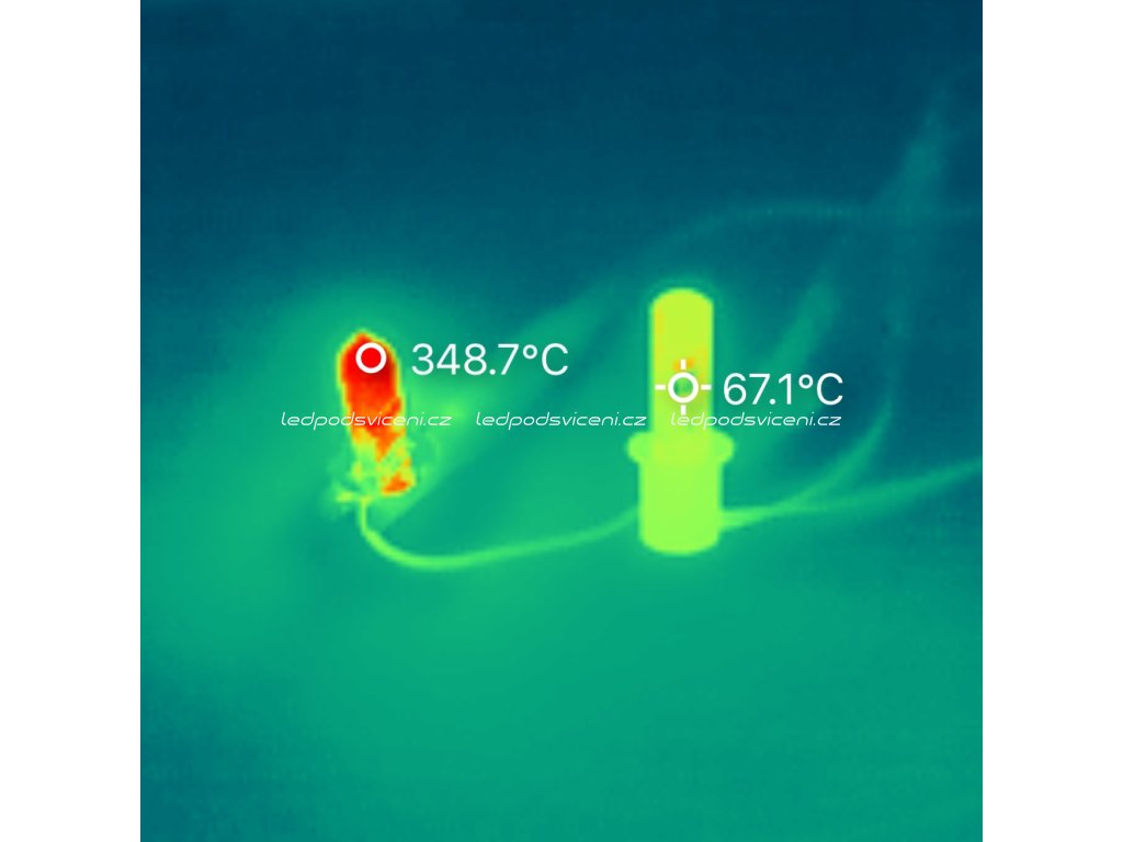- produkují zlomek tepla (150°C v místě LED čipu) oproti halogenovým žárovkám kde se celá skleněná baňka zahřívá na teplotu přesahující 400°C. Nehrozí tedy žádné vypalování parabol